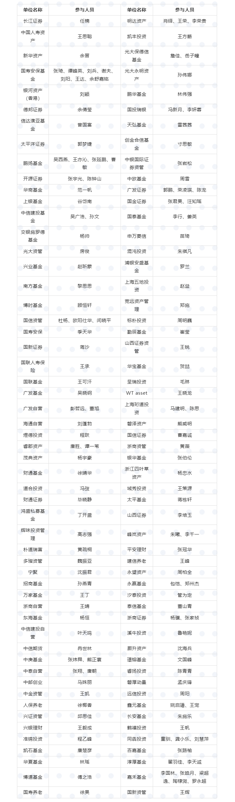 【附】路德環(huán)境投資者交流活動(dòng)單位及參會(huì)人員清單
