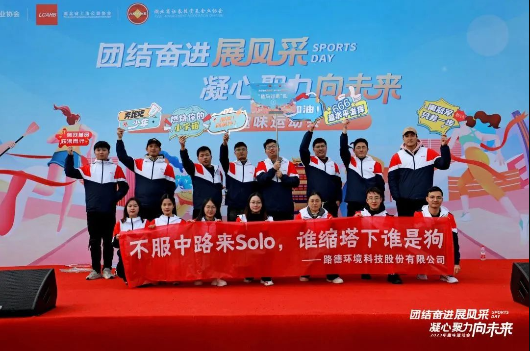 11月12日,由湖北省上市公司協(xié)會(huì)聯(lián)合 湖北省證券期貨業(yè)協(xié)會(huì)、 湖北省證券投資基金業(yè)協(xié)會(huì) 共同舉辦的2023年趣味運(yùn)動(dòng)會(huì)成功舉行。 路德環(huán)境應(yīng)召參賽, 與38支隊(duì)伍一起競逐巔峰, 用澎湃激情驅(qū)散初冬的冷意。 接下來,就讓我們跟隨圖片, 一起來回顧路德健兒們?cè)谶\(yùn)動(dòng)場上的英姿。 圖 | 39支參賽隊(duì)伍大合影 一座競技舞臺(tái),39支參賽隊(duì)伍, 只待一聲令下,好戲馬上開場。 圖 | 路德環(huán)境參賽隊(duì) 成績好壞先不管, 但口號(hào)一定要霸氣。 圖 | 拔河比賽 既然選擇站到了賽場上, 就