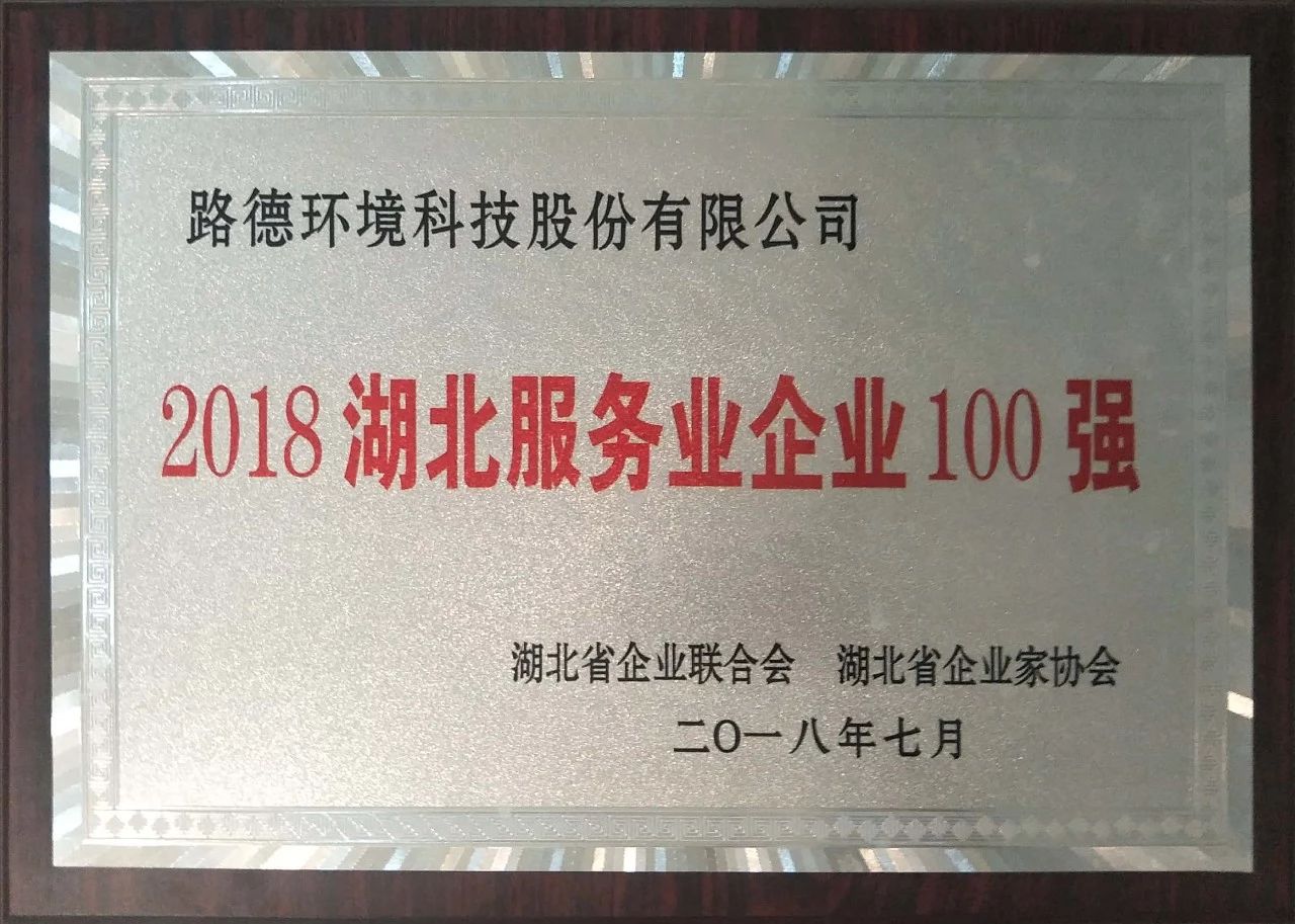 2018-08-07熱烈祝賀“路德環(huán)境科技股份有限公司”榮膺 2018 湖北服務業(yè)企業(yè)100強