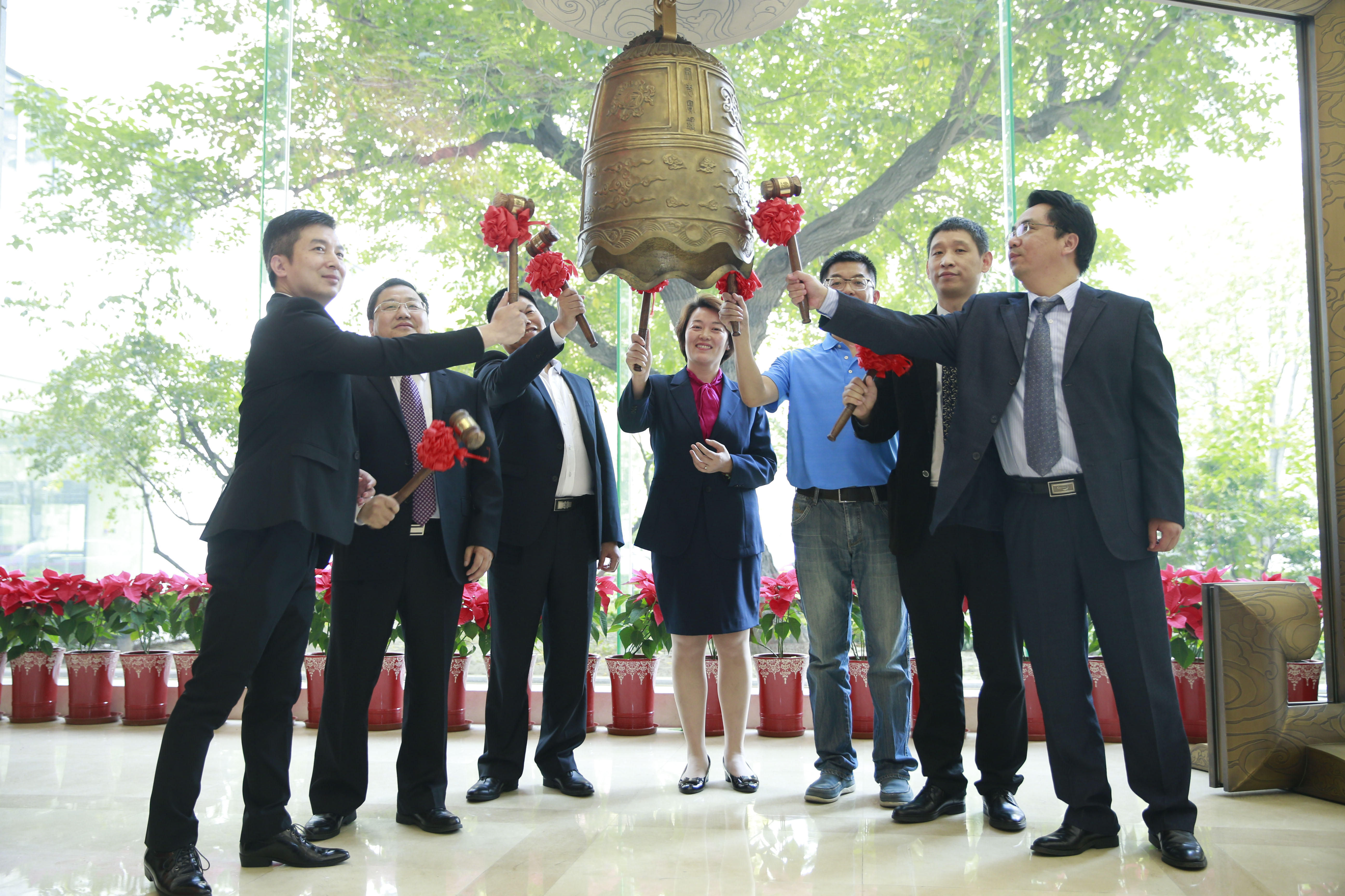 2015-10-2110月16日路德環(huán)境在北京參加新三板掛牌儀式 副總經(jīng)理兼董事會(huì)秘書(shū)黃郴先生代表路德環(huán)境敲響金鐘