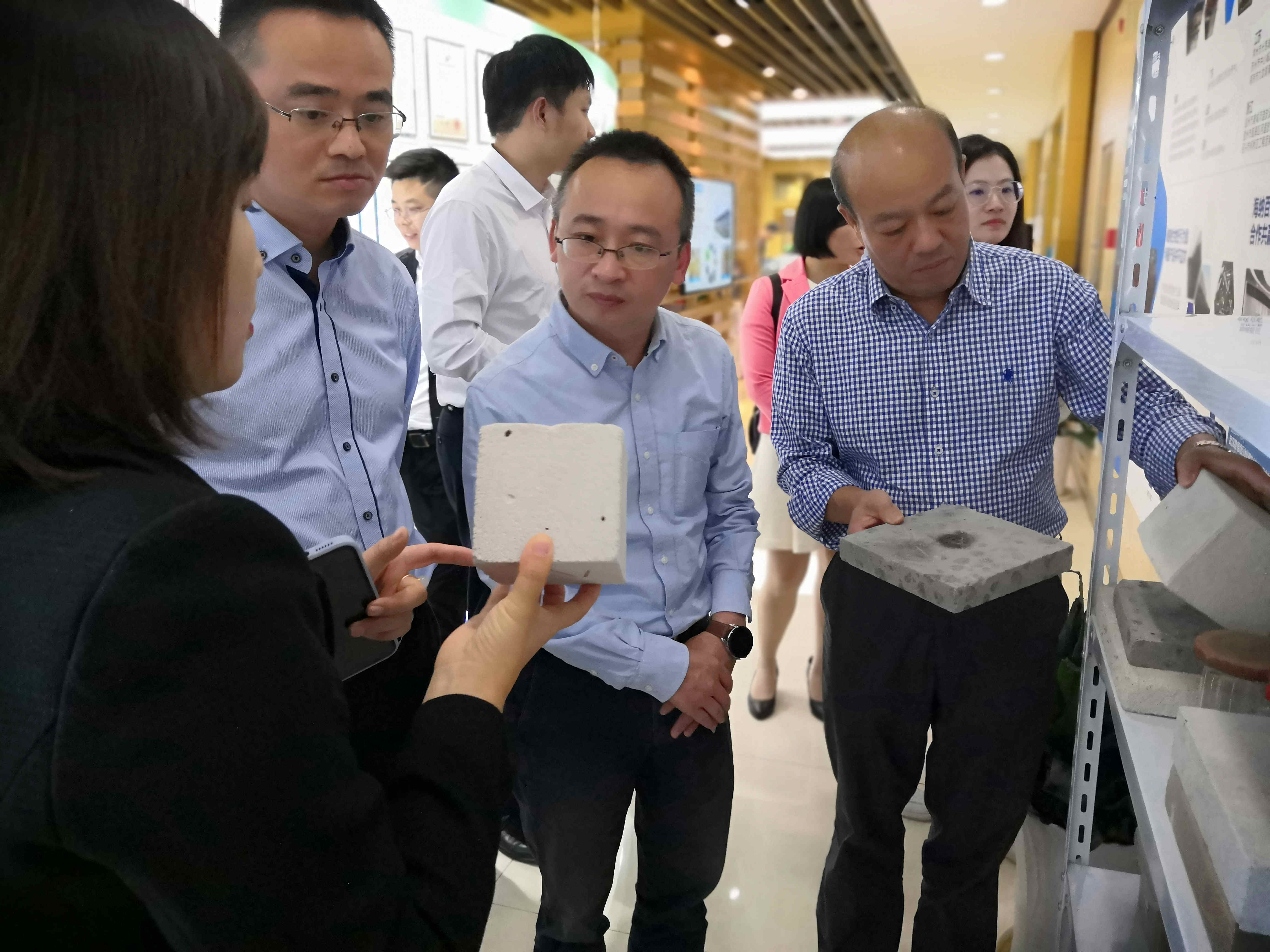 在脫水泥餅資源化利用展臺前,陳新華一行對公司研發(fā)的新型墻材磚很感興趣。劉菁女士介紹道,這是公司通過自主研發(fā)的淤泥脫水固結(jié)一體化技術(shù)制作的蒸壓加氣混凝土砌塊,這種新型墻材磚很輕,加氣塊的泥餅摻量達到30%以上,替代了傳統(tǒng)材料中粉煤灰、沙石中的有效成分,該項技術(shù)屬國內(nèi)首創(chuàng)。