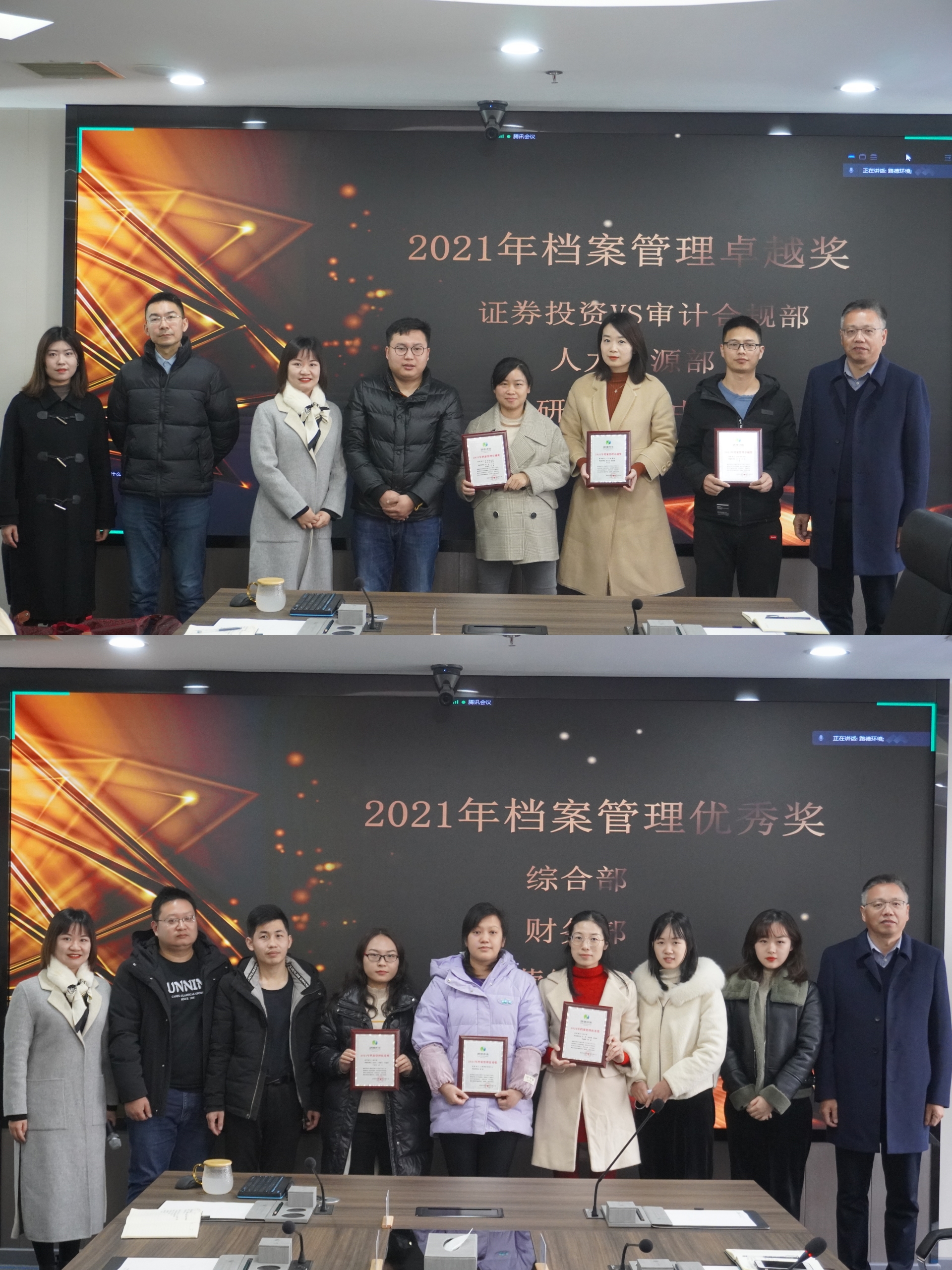 最后,季光明先生和劉菁女士對本次檔案檢查榮獲卓越獎和優(yōu)秀獎的部門頒發(fā)了榮譽獎牌,此次檔案檢查工作圓滿落幕。