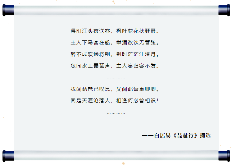 其中,就有“同是天涯淪落人,相逢何必曾相識”這句膾炙人口的話。而伴隨著《琵琶行》的千古流傳,“潯陽江頭夜送客”,也成為九江城市水文中抹不去的一段佳話。