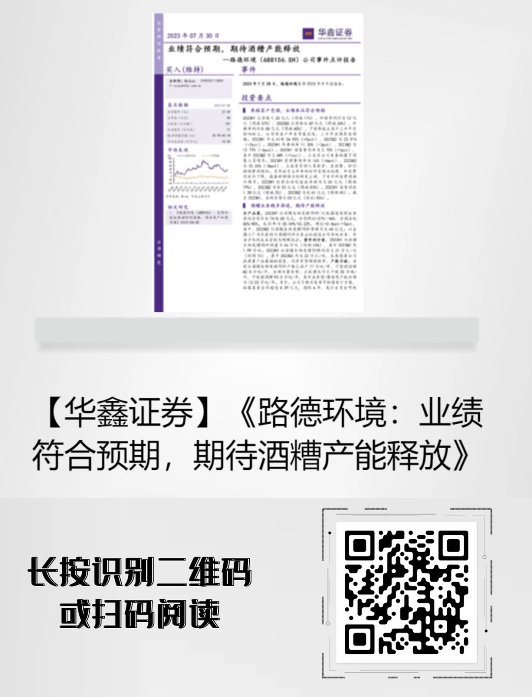 【點評報告】華鑫證券點評路德環(huán)境:業(yè)績符合預(yù)期,期待酒糟產(chǎn)能釋放