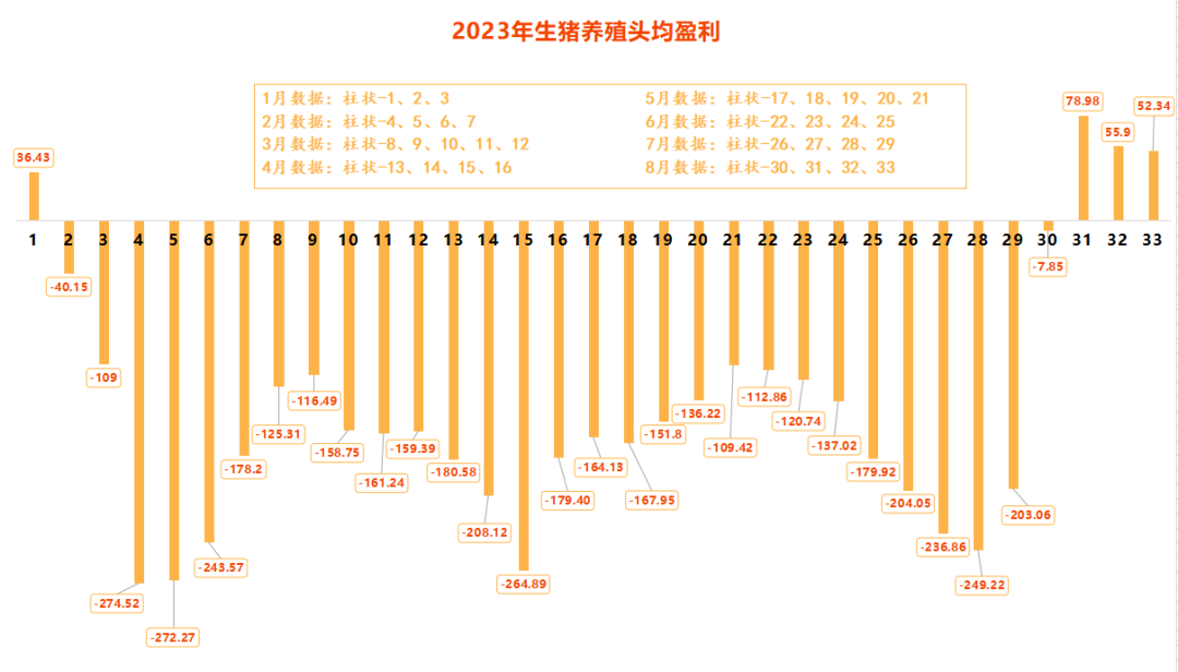 2023年以來,我國生豬養(yǎng)殖頭均盈利狀況 數(shù)據(jù)來源:發(fā)改委價格監(jiān)測中心、卓創(chuàng)資訊