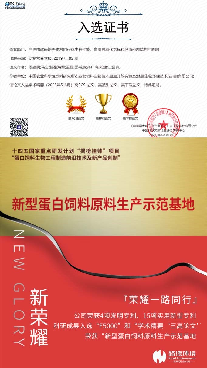 公司榮獲19項技術(shù)專利(4項發(fā)明專利、15項實用新型專利);合成生物科研項目入選湖北省科技廳2023年省科技計劃立項項目;產(chǎn)品應(yīng)用科研成果入選“F5000”和“學(xué)術(shù)精要‘三高論文’”;公司榮獲“新型蛋白飼料原料生產(chǎn)示范基地”稱號;河湖淤泥處理項目獲評“2023年度武漢環(huán)保產(chǎn)業(yè)優(yōu)秀環(huán)保項目案例”;獲評“中核集團(tuán)合格供應(yīng)商”。