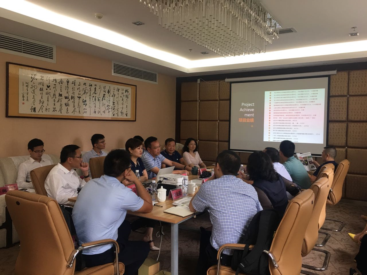 ▲季光明總向省上市中心領(lǐng)導向勇主任與介紹公司項目情況