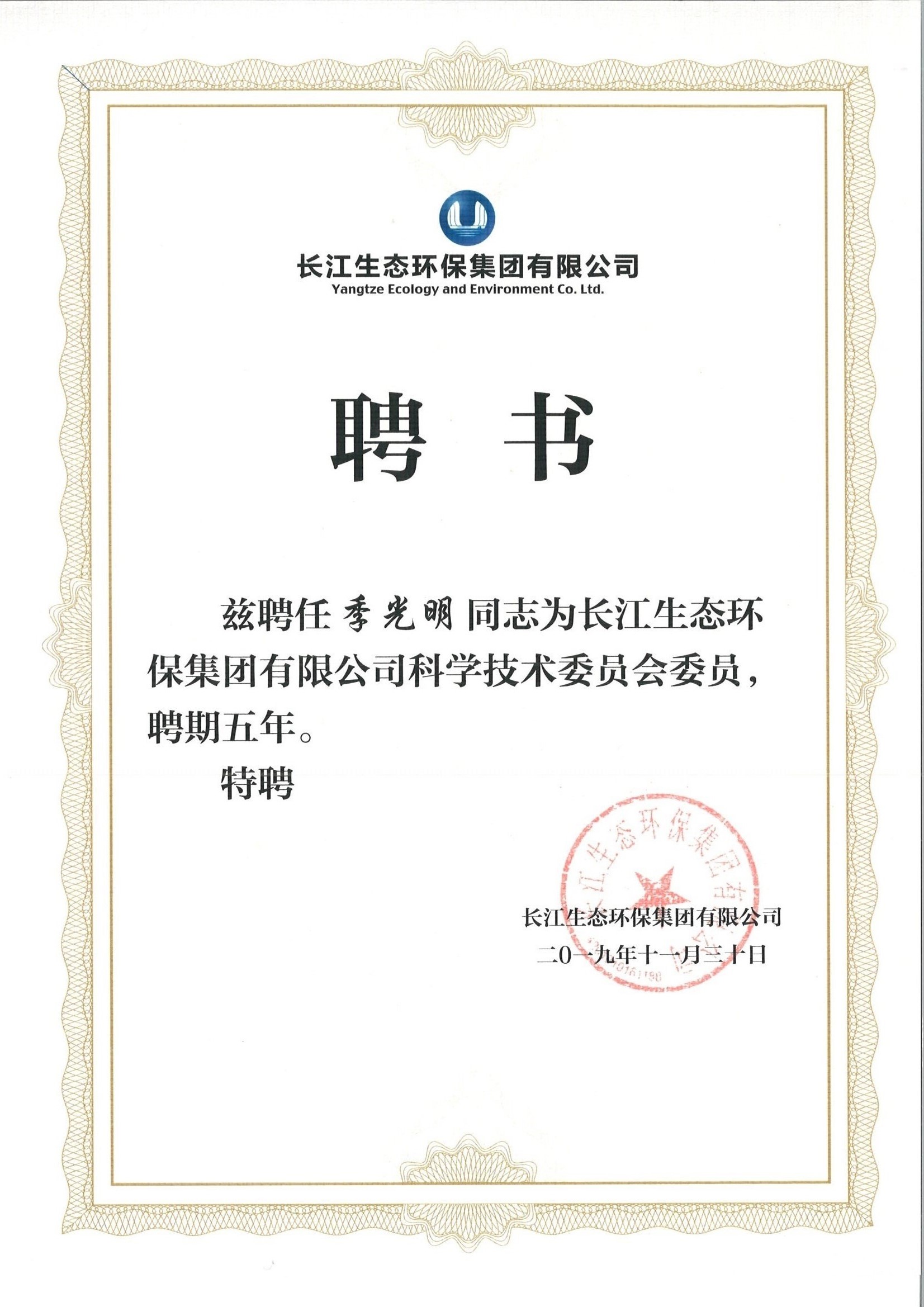 季光明董事長獲聘長江生態(tài)環(huán)保集團(tuán)有限公司科學(xué)技術(shù)委員會(huì)委員