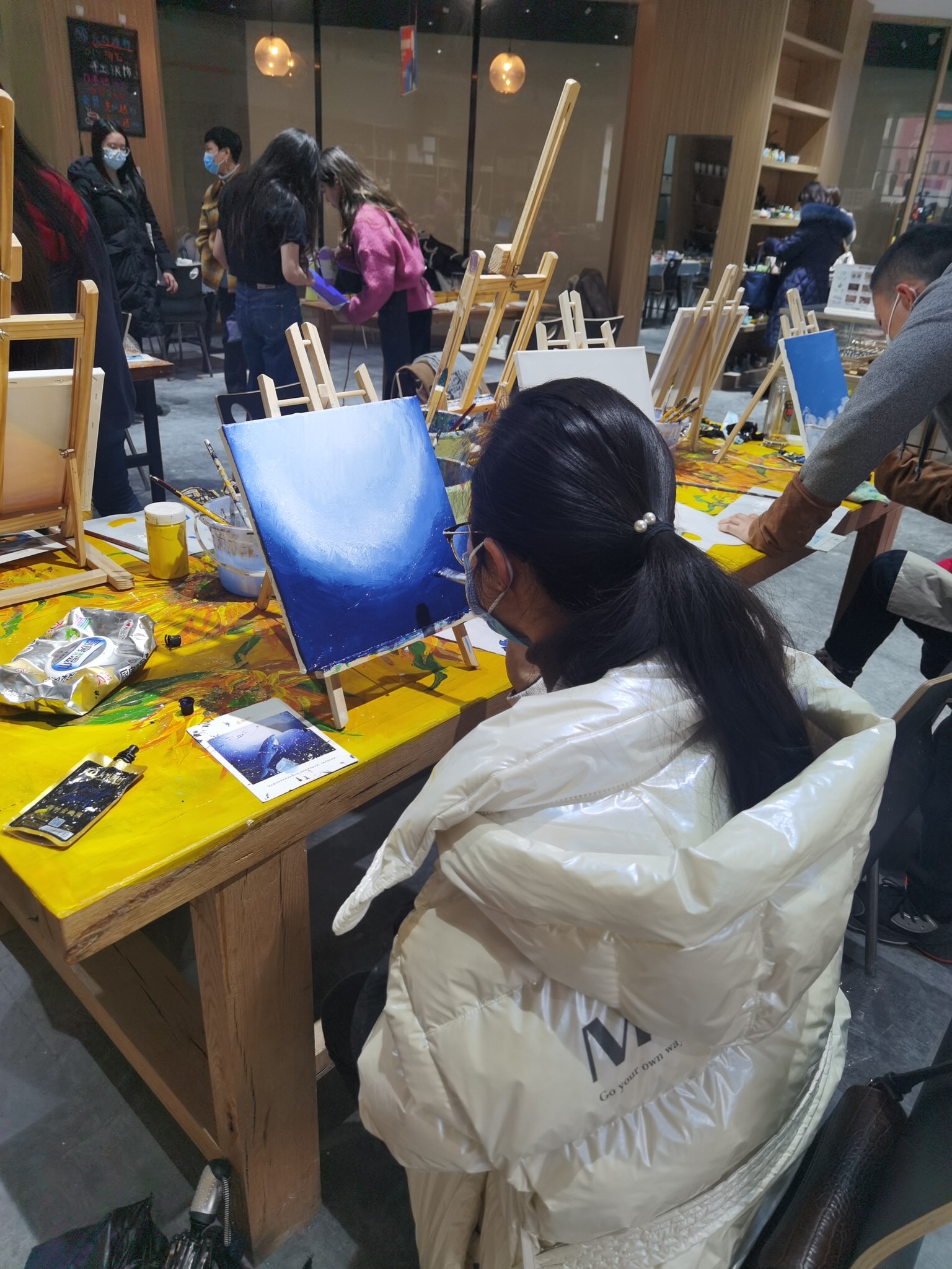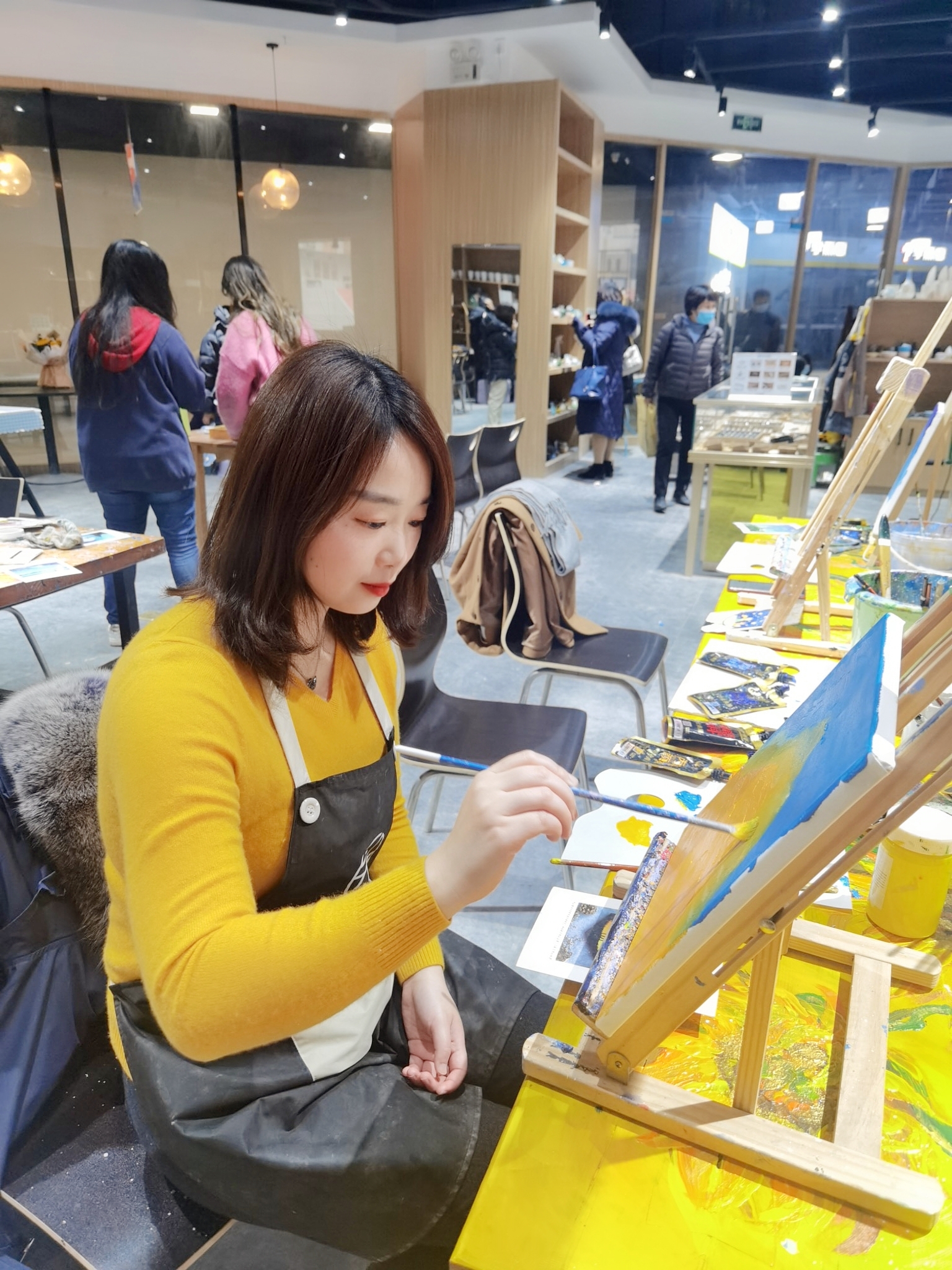 一張“白紙”的畫板上,大家大膽的調(diào)色、上色、勾勒,在專業(yè)老師的指導(dǎo)和加工下,經(jīng)過兩小時(shí)的精心創(chuàng)作,一幅幅生動(dòng)、精美的裝飾畫躍然紙上。