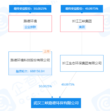 2020年7月,路德環(huán)境與長江三峽集團展開合作,成立武漢三峽路德環(huán)保技術(shù)有限公司,路德環(huán)境占股50.002%。